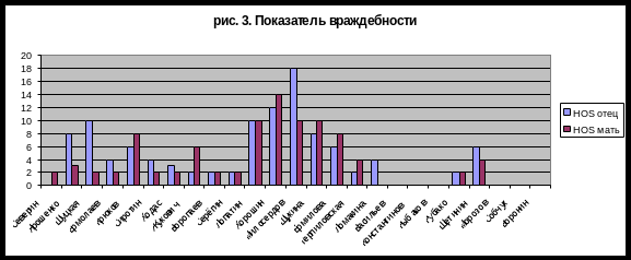 Враждебность в родителях подростки видят, прежде всего, в раздражительности, которая может явиться следствием осложнений на работе, общей усталости – эгоцентрически настроенные дети не склонны принимать во внимание родительские условности. Чрезмерная подозрительность и непомерная критика в адрес подростка тоже воспринимается им не как заинтересованность, а как враждебность (рис.3).