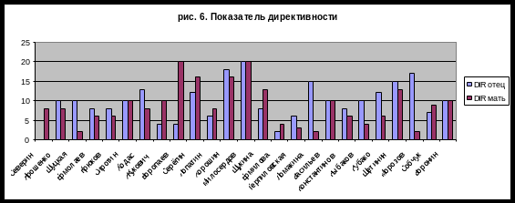 Непоследовательный стиль воспитания прослеживается подростками как резкая и неоправданная смена действий родителей по отношению к детям. Резкие перепады настроения, чередующиеся всплески альтруизма и подозрительности, неоправданное проявление силы в чередовании с покорностью и согласием, вызывая недоумение, перерастают в равнодушное наблюдение и вызывают желание в подростках проявлением неадекватного поведения – в этом им (подросткам) видится возможность сменить позицию родителя по отношению к себе и желание выработать в родителях и их отношении стабильность и спокойное адекватное восприятие. Сухие показатели диаграммы на рис.6 выявляют довольно высокий уровень непоследовательности при одновременной директивности родительского поведения (рис.6).