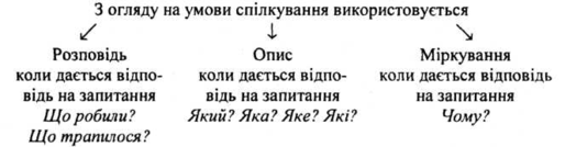 — Залежно від того, хочемо ми просто розповісти про певний предмет чи зазначити, який він є, щоб той, хто слухає, добре його уявив, ми будуємо розповідь або опис. Найчастіше нам доводиться розповідати. Але правильно, точно описувати предмети і явища теж треба вміти.