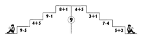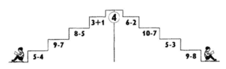 Приклади складені таким чином, що відповідь одного є початком іншого. Відповідь кожного приклада діти записують на відповідній сходинці. Кожна дитина може сама себе проконтролювати. Можна скласти так, що відповідь кожного буде відповідати номеру сходинки, на якій він записаний: