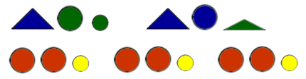 Дитина повинна надягти кільця відповідно до зразка, після чого написати на картці, яким по рахунку було кільце кожного кольору, зверху чи знизу.