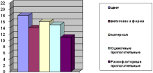 У детей существенно изменилось соотношение групп прилагательных. Видно, что больше всего прилагательных цвета, затем прилагательных, обозначающих материал, и примерно столько же оценочных прилагательных и прилагательных величины и формы, разнофакторных прилагательных – 11 слов