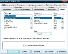 Вкладка __________ предназначена для установки тех характеристик, от которых зависит собственно начертание символов.