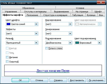 e) во вкладке Шрифт выбрать подчёркнутый.