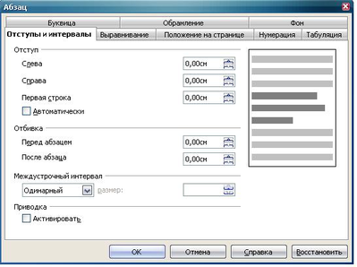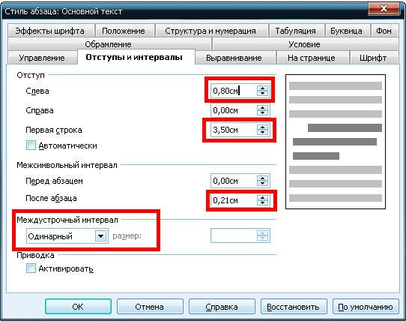| 3. Выбрать пункт «Отступы и интервалы» и установить следующие параметры (см. рисунок) | ||
