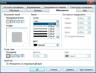 | 2. В меню «Формат» выбрать пункт «Абзац» и перейти на вкладку «Обрамление» 3. Подбирая параметры линий, тени, стиля добейтесь результата, как на рисунке |