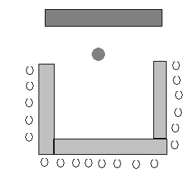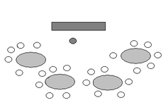 Такая расстановка мебели очень хорошо способствует организации процесса «списывания» на контрольных и самостоятельных работах, разговорам «по душам» между учащимися. Столы и парты ограничивают активность учащихся, прежде всего двигательную, создают ощущение границ, барьеров.