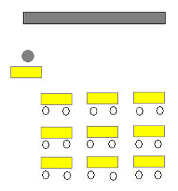 В настоящее время в учебных заведениях доминирует традиционная форма расположения мебели в кабинете: несколько рядов поставленных друг за другом парт, перед которыми находятся стол педагога и доска для записей. Эта форма очень удобна для господствующих сейчас методов обучения, но мы остановимся более подробно на ее ограничениях.