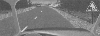 3. О приближении к участку дороги, где возможен выброс щебня