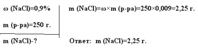 Сколько грамм соли необходимо для получения 250 г физиологического раствора? (на столы раздаются карточки с условием задачи, один из учащихся решает задачу у доски).