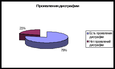 Таким образом, мы выяснили, что у 79 % детей класса встречаются проявления дисграфии (рисунок 3).