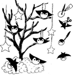 вирізуємо з чорного паперу голівку, спинку і крильця снігура;