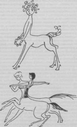 Без предварительной диссоциации творческое воображение немыслимо. Диссоциация — первый этап творческого воображения, этап подготовки материала. Невозможность диссоциации - существенное препятствие для творческого воображения. Ассоциация — создание целостного образа из элементов вычлененных единиц образов. Ассоциация дает начало новым сочетаниям, новым образам. Кроме того, существуют и другие интеллектуальные операции, например, способность мыслить по аналогии с частным и чисто случайным сходством. Продуктивное воображение отличается тем, что в нем действительность сознательно конструируется человеком, а не просто механически копируется или воссоздается, хотя при этом в образе она все же творчески преобразуется. Например, основой творчества ряда мастеров искусства, чей полет творческой фантазии уже не удовлетворяют реалистические средства, становится тоже реальность. Но эта реальность пропускается через продуктивное воображение творцов, они по-новому ее конструируют, пользуясь светом, цветом, вибрацией воздуха (импрессионизм), прибегая к точечному изображению предметов (пуантилизм), разлагая мир на геометрические фигуры (кубизм) и так далее. Даже произведения такого направления искусства, как абстракционизм, создавались при помощи продуктивного воображения. С продуктивным воображением в искусстве мы встречаемся в тех случаях, когда мир художника – фантасмагория, иррационализм. Результатом такого воображения является роман М.Булгакова “Мастер и Маргарита”, фантастика братьев Стругацких, фантастические кентаврицы и кентаврята четырнадцатилетней московской школьницы Нади Рушевой (рис.2).