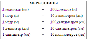 В III классе учащиеся составляют и заучивают таблицу всех изученных единиц длины и их отношений.