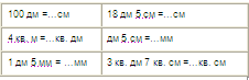 ОБОРУДОВАНИЕ: геометрические фигуры, карточки с заданием, записи на доске, учебник, образец кв.см.