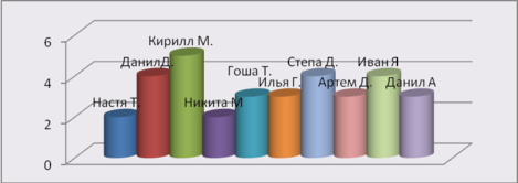 При выполнении задания "Поймай звук" справились семь детей с этим заданием на узнавание данного звука в ряду других звуков. Многие ребята Ваня Я., Данил А., Никита М. выделяли звук "м" в ряду гласных, но затруднялись в его выделении среди согласных. Значительные затруднения возникли у детей при узнавании данного звука в ряду слогов. Трое детей смогли определить наличие звука "м" только в обратных слогах. Узнать звук в ряду слов оказалось слишком сложно для детей, лишь двое детей выделили звук "м" в словах частично. У семи детей возникли затруднения при выделении звука среди слогов со звуками минимальной степени контрастности. При определении наличия звука "м" в слове, три ребенка допустили ошибки при предъявлении слов со звуком "мь". Учитывая, что при выполнении задания "Повтори, как я скажу", дети правильно повторили ряд слогов со звуками "м", "мь", можно предположить, что дети различают оттенки в их произношении, но считают их одним звуком.