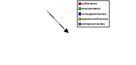 1) Методика К.Н Томаса («Оценка способов реагирования в конфликте») позволила определить типичные способы реагирования на конфликтные ситуации (соперничество, сотрудничество, компромисс, избежание, приспособление). Эта методика позволяет также оценить степень адаптации каждого члена коллектива к совместной деятельности.