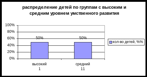 | №№ группы | Уровень умственного развития | Количество детей, составивших группу (%%) | Средний балл по группе |