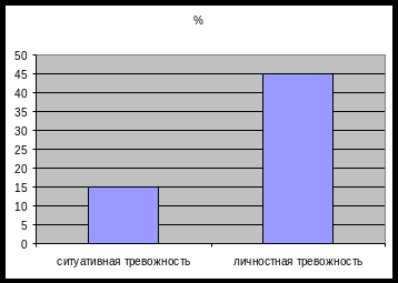 Оценка результатов: до 30 баллов - низкая тревожность, от 31 до 45 баллов - умеренная тревожность, свыше 46 баллов - высокая тревожность.