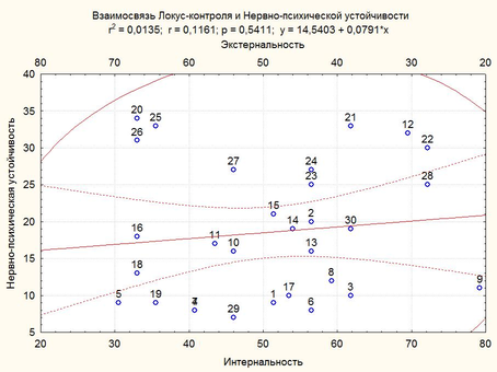 | Экстернальность | r = -0,1981 (p = 0,303) |