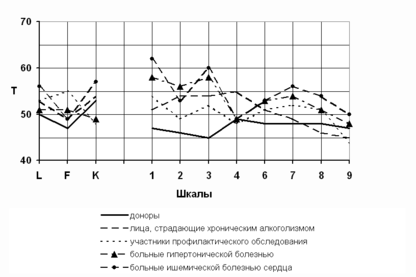 Рис. Усредненные профили СМОЛ обследованных различных категорий.