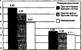 Очевидно, при такой суженной альтернативе нейтральная позиция действительно оказывается относительно (и только относительно) лучшей. Однако возможны и другие альтернативные способы родительского реагирования на агрессию между сибсами, которые не были здесь предметом изучения. Одним из таких способов реагирования является обсуждение возникшей проблемы, осуществление переговорного процесса, научение на конкретном примере возникшего конфликта конструктивным, неагрессивным способам его разрешения. Ведь, как экспериментально доказано в других исследованиях, агрессивные дети отличаются от неагрессивных в первую очередь именно слабым знанием конструктивных (альтернативных агрессивным) способов разрешения конфликтов.