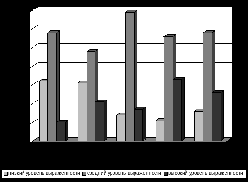 Опираясь на данные количественного анализа, мы можем сказать, что женщины-руководители нашей выборки показали в большинстве своем низкий и средний уровень выраженности самооценки, в то время как мужчины-руководители имеют меньшее количество лиц с низким показателем самооценки. В количественном виде мы можем представить следующем образом: у мужчин – 27% с высоким уровнем самооценки, 54% со средним и 19% с низким; у женщин - 12% с высоким, 49% со средним и 39% с низким уровнем самооценки.