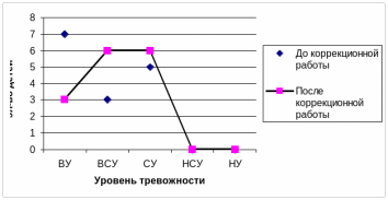 Рисунок 1 - Уровень тревожности до и после коррекционной работы
