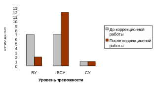 | Уровень тревожности | До коррекционной работы | После коррекционной работы |