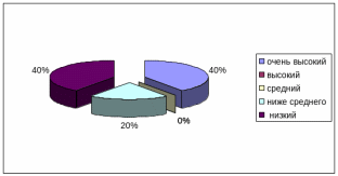 Итак, по результатам данного исследования видно, что у 40% студентов наблюдается очень высокий уровень коммуникативных умений, у 20% уровень коммуникативных умений - ниже среднего и у 40% – низкий уровень умений.