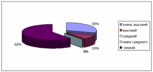 Из данных диаграммы 1 видно, что средний уровень общительности менеджеров 10%, высокий уровень – 0%, заниженный – 40% и очень низкий – 50%