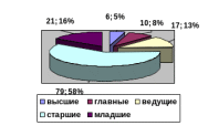Диаграмма наглядно показывает, что большая часть служащих, а это 58%, занимают должности старших специалистов. Самая маленькая доля, всего 5%, это должности, относящиеся к высшим специалистам.