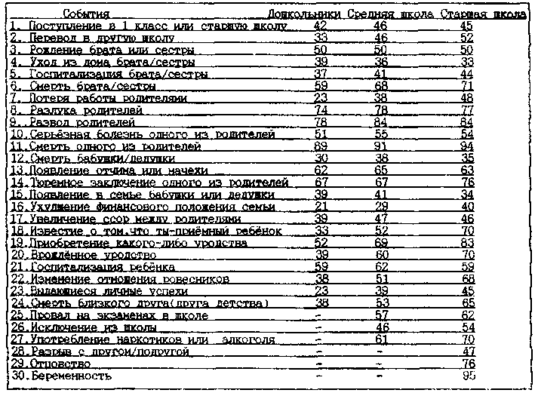 Таблица 1. Основные стрессоры в жизни ребёнка