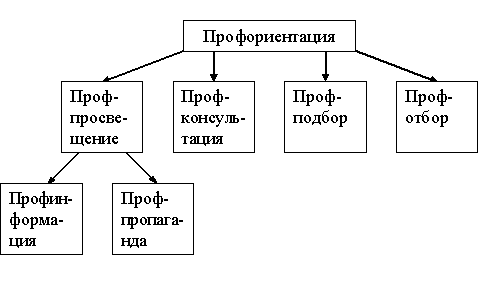 Теория профориентации – это форма научного знания, дающего представление о закономерностях и существенных связях двух процессов – профессионального самоопределения молодежи в соответствии с личными интересами и склонностями и ориентирования ее на те профессии, по которым ощущается нехватка в кадрах.