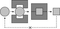 На входе в этот процесс мы имеем материал определенной формы, который проходит через воздействие пресса и потому теряет свою старую форму (то есть деформируется). На выходе этот материал имеет новую форму, которая соответствует конфигурации пресса. Для того чтобы процесс деформации успешно состоялся, необходима достаточная сила пресса и подходящие свойства материала. В противном случае материал не изменит свою форму (если пресс не достаточно мощный) или через некоторое время он может принять первоначальную форму. Для того, чтобы этого не случилось в некоторых производственных процессах используются различные способы закрепления полученной формы (например, обжиг при изготовлении керамических изделий), будем это так условно и называть.
