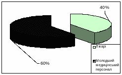 По досвідченості респонденти розподілилися на групи – саме лікарів та молодшого медичного персоналу. Розподіл у цьому сенсі представлено на рисунку 3.3.