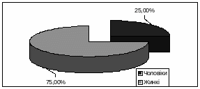Розподіл випробовуваних по статевій приналежності в процентному відношенні має такий вигляд (рис.3.2).