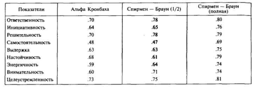 Для оценки использовались следующие показатели: альфа Кронбаха, коэффициент Спирмена-Брауна по половине теста, коэффициент Спирмена-Брауна по полной форме. Результаты проверки представлены в табл.5.