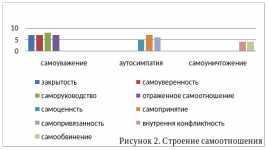 Взаимосвязь первичных факторов самоотношения показана через три значимых обобщенных (вторичных) фактора: самоуважение, аутосимпатию и самоуничтожение (рис.2).