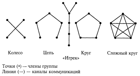 Рис 2. Типы коммуникативных сетей (структур коммуникаций в группе)