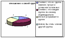 Результаты анкетирования данной группы показали отношение испытуемого к своей группе, отношение к другим группам, а так же позиционирование себя в группе.