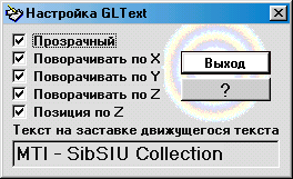 Малюнок 37. Вікно настроювання GL-тексту, що рухається (
