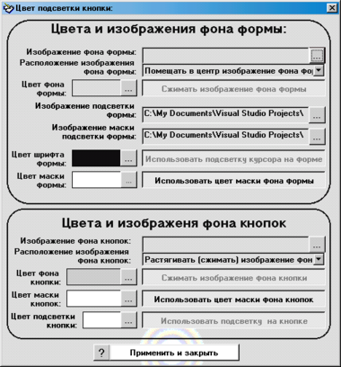Програма комплексного дослідження інтелекту зроблена таким чином, що зовнішній вигляд її вікон можна міняти: так можна змінити кольори тла кнопки, кольори тла форми, кольори шрифту форми, кольори маски кнопок, можна також помістити малюнки окремо на тло форми й на тло кнопки (рис. 32).