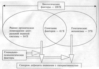 Кроме того, отмечается и значение генетического фактора. Замечено что в большом проценте случаев у родителей детей с СДВГ в детстве наблюдались те же симптомы. Была выдвинута гипотеза о существовании наследственной предрасположенности к этому заболеванию (Т. Б. Глезерман).