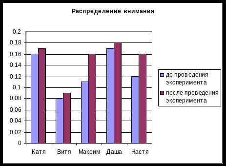Замечание. Если говорить строго, то эти данные указывают не только на распределение внимания в чистом виде, но также на его продуктивность и устойчивость. Разделить и независимо друг от друга оценить эти свойства внимания не представляется возможным.