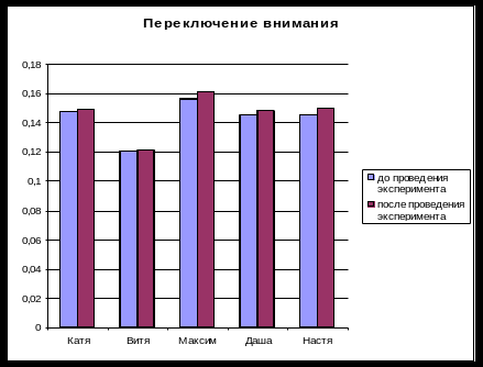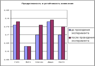 Лидеры класса Даша и Катя боялись потерять свои позиции, стеснялись ошибиться в разрешении проблемной ситуации, в связи, с чем уровень продуктивности устойчивости внимания практически не изменился. Витя – слабый по учебе ученик, в проблемные ситуации вникал с трудом, поэтому показатели по нему практически не изменились. С такими детьми необходимо разрабатывать специальные проблемные ситуации, которые бы способствовали их развитию.
