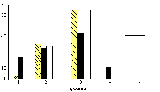 На рисунке 2.1. представлена диаграмма, на которой показаны уровни развития самостоятельности в различных видах трудовой деятельности.