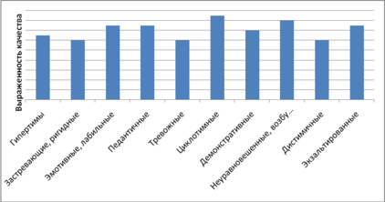 Наиболее выраженными чертами характера воспитанников являются циклотимные, неуравновешенные, эмотивные, педантичные и экзальтированные типы (см. гистограмму №2).