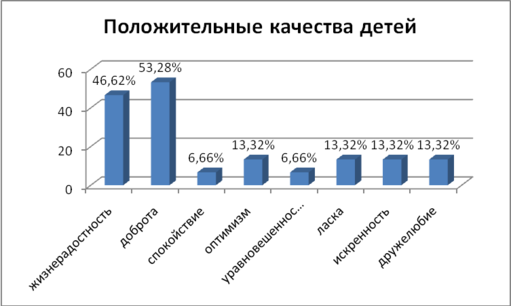 Как видно на рисунке 2, большинство родителей отмечают такие положительные качества своих детей как доброта и жизнерадостность.
