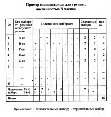 Число выборов, полученных каждым человеком, является мерилом положения его в системе личных отношений, измеряет его "социометрический статус". Люди, которые получают наибольшее количество выборов, пользуются наибольшей популярностью, симпатией, их именуют "звездами". Обычно к группе "звезд" по числу полученных выборов относятся те, кто получает 6 и более выборов (если при условиях опыта каждый член группы делал 3 выбора). Если человек получает среднее число выборов, его относят к категории "предпочитаемых", если меньше среднего числа выборов (1-2 выбора), то к категории "пренебрегаемых", если не получил ни одного выбора, то к категории "изолированных", если получил только отклонения - то к категории "отвергаемых".